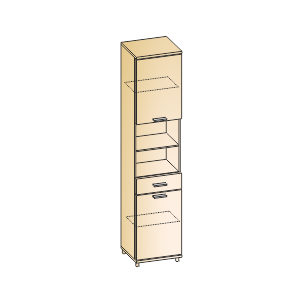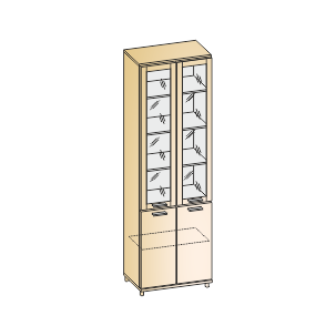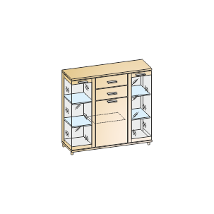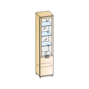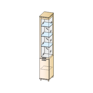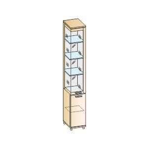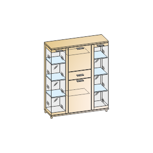 Интересная дизайнерская разработка со стеклянным фасадом и стеклянной боковой стенкой у витрин и антресольных секций стильно выделит интерьер уникальной композицией, а также позволит создавать уникальные буфетные варианты.